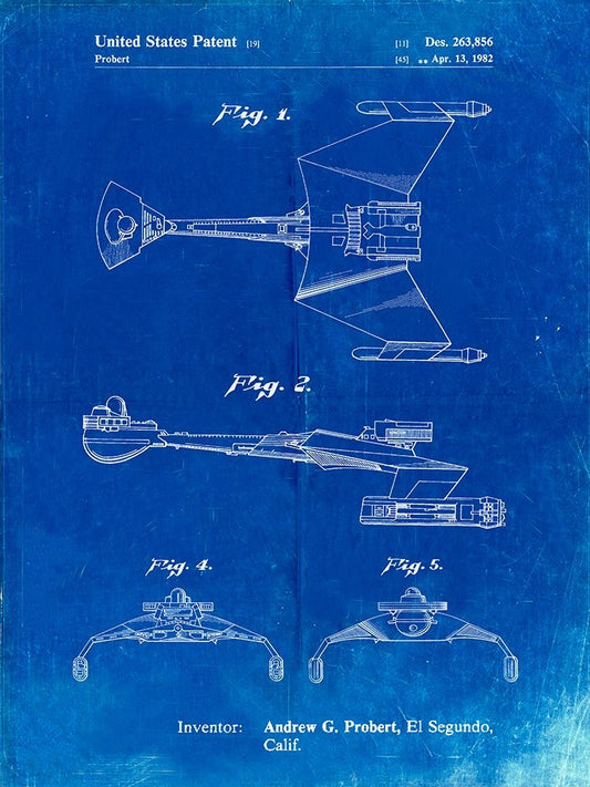 PP1053-Faded Blueprint Star Trek Klingon Empire Starship Poster White Modern Wood Framed Art Print with Double Matting by Borders, Cole