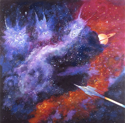 Space Dragons White Modern Wood Framed Art Print with Double Matting by Bell, Bill