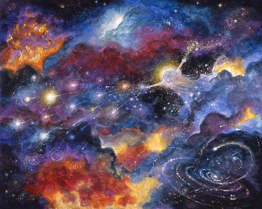 Creation Of Universe White Modern Wood Framed Art Print with Double Matting by Bell, Bill
