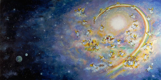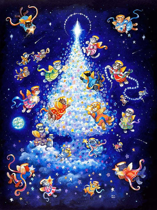 The Angel Cats White Modern Wood Framed Art Print with Double Matting by Bell, Bill