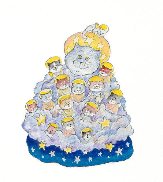 Cat Heaven White Modern Wood Framed Art Print with Double Matting by Bell, Bill