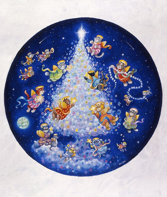 The Star Tree - Circle White Modern Wood Framed Art Print with Double Matting by Bell, Bill