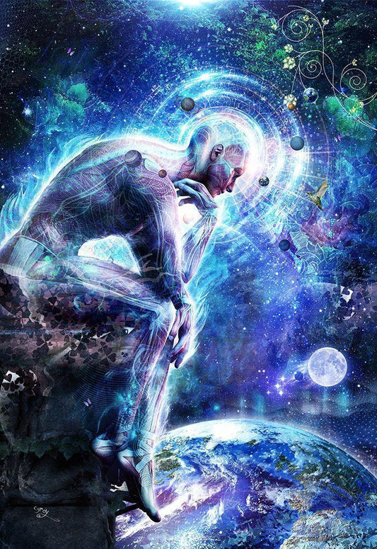 Astrologer 2 White Modern Wood Framed Art Print with Double Matting by Bell, Bill