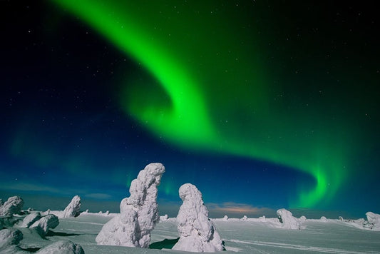 Chasing The Northern Lights Black Ornate Wood Framed Art Print with Double Matting by De La, Javier