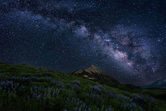 Night Sky Over A Mountain Ridge Black Ornate Wood Framed Art Print with Double Matting by Cai, James