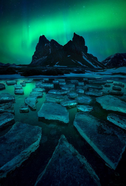 Icy Eystrahorn Black Ornate Wood Framed Art Print with Double Matting by Kuric EP, Marian