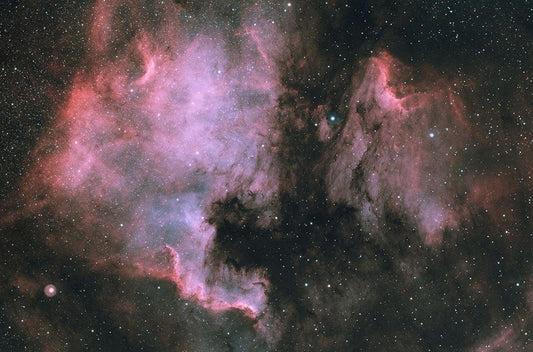 North America And Pelican In Cygnus Black Ornate Wood Framed Art Print with Double Matting by Astroberry, Sismo