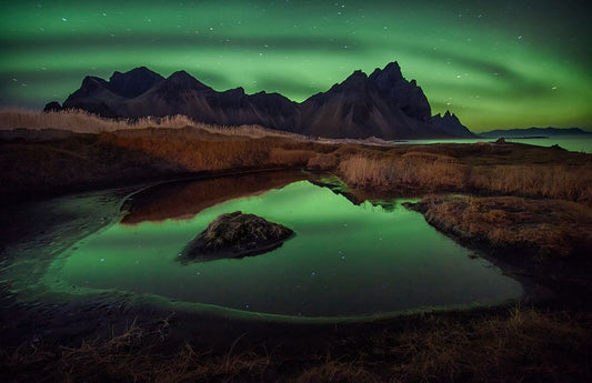 Northern Lights Reflection Black Ornate Wood Framed Art Print with Double Matting by Auf Dem, Andrea