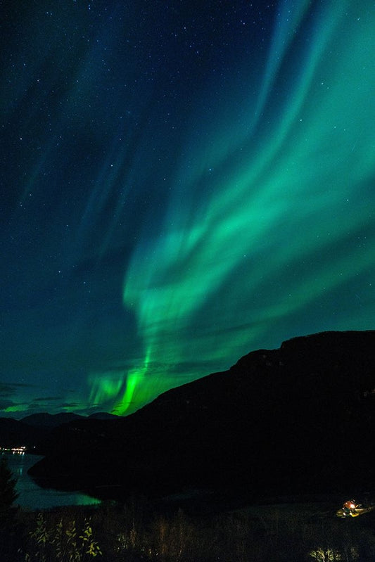 Northern Lights In October Black Ornate Wood Framed Art Print with Double Matting by Caroline Stroksnes, Mette