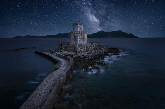 The Night Walked Down The Sky ... White Modern Wood Framed Art Print with Double Matting by Depaepe, Yvette