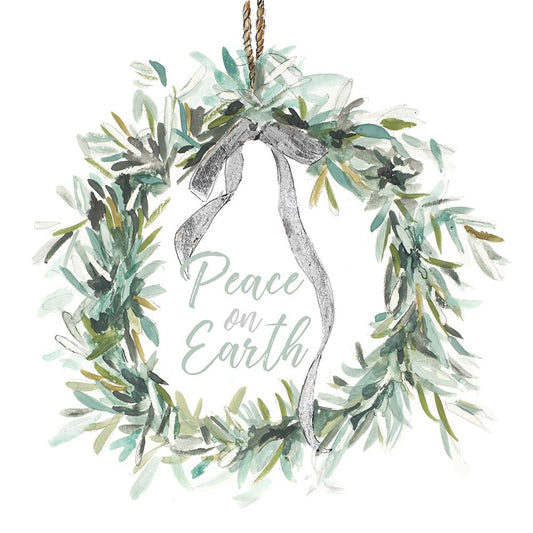Peace on Earth Wreath Black Ornate Wood Framed Art Print with Double Matting by Pinto, Patricia