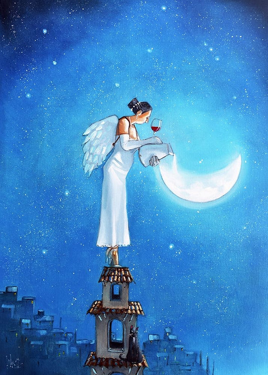 Shoot For The Moon Black Ornate Wood Framed Art Print with Double Matting by Loreth, Lanie