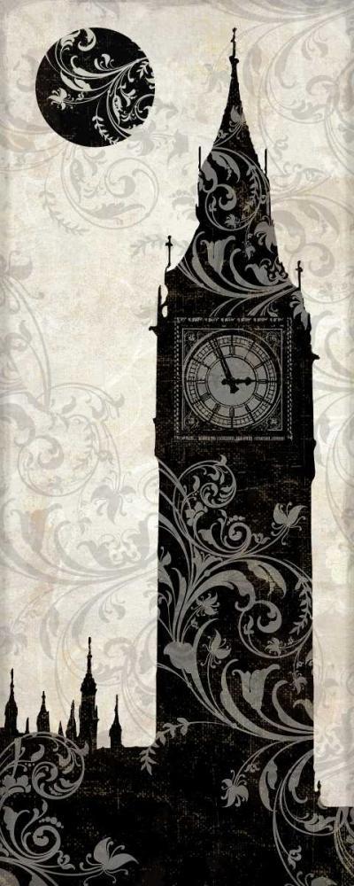 Moon over London Black Ornate Wood Framed Art Print with Double Matting by Color Bakery