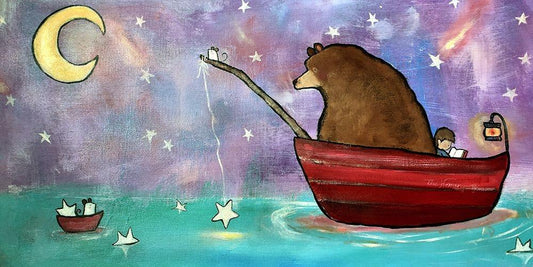Bear Boat Black Ornate Wood Framed Art Print with Double Matting by Doss, Andrea