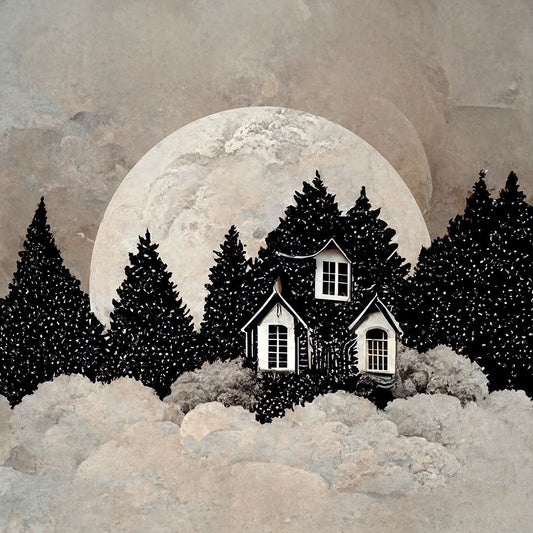 Moon and Back I Black Ornate Wood Framed Art Print with Double Matting by Sasha