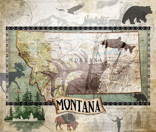Vintage State Montana Black Ornate Wood Framed Art Print with Double Matting by LightBoxJournal