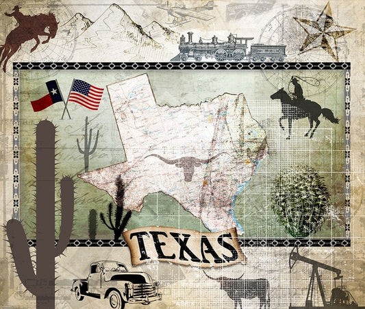Vintage State Texas Black Ornate Wood Framed Art Print with Double Matting by LightBoxJournal