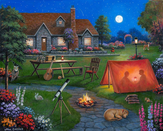 Fishing In The Moon Light Black Ornate Wood Framed Art Print with Double Matting by Zaccheo, John