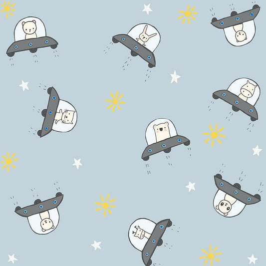 2098 Cute Space Ships Black Ornate Wood Framed Art Print with Double Matting by HUE and MI and Sangita