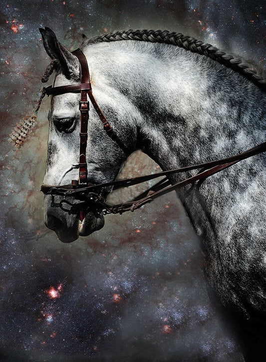 The Horse Among the Stars Black Ornate Wood Framed Art Print with Double Matting by Jenny Rainbow Fine Art