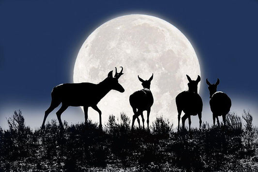 Antelope Pronghorn Silhouettes and Moon Black Ornate Wood Framed Art Print with Double Matting by Schell, Jennie Marie