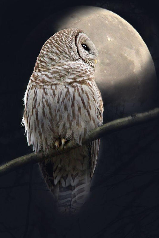Owl and Moon Black Ornate Wood Framed Art Print with Double Matting by Schell, Jennie Marie