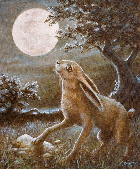 116 Moon Gazing Hare Black Ornate Wood Framed Art Print with Double Matting by Silver, John