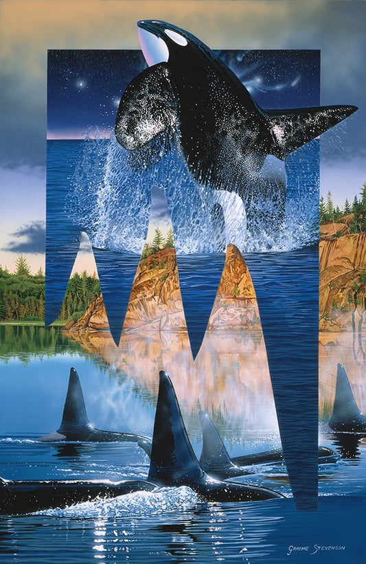 Orca Reflections Black Ornate Wood Framed Art Print with Double Matting by Stevenson, Graeme