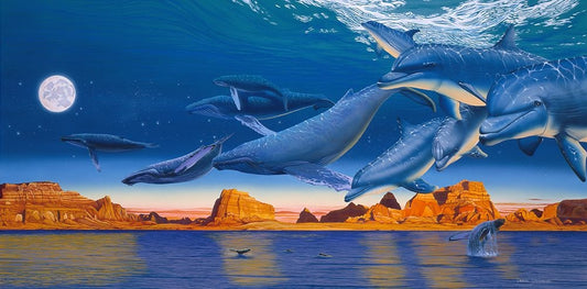 Dolphin Black Ornate Wood Framed Art Print with Double Matting by Stevenson, Graeme