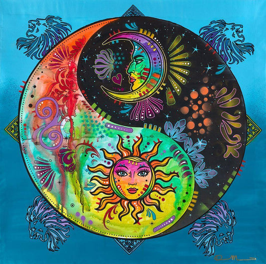 Yin Yang - Sun and Moon Black Ornate Wood Framed Art Print with Double Matting by Dean Russo Collection