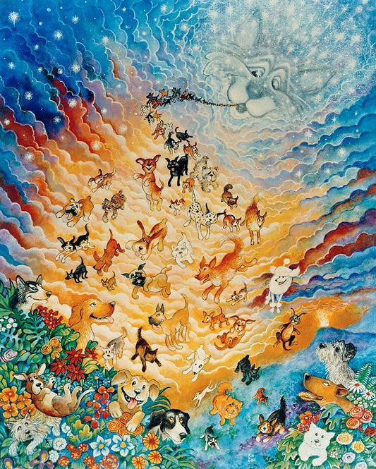 Creation of Dogs Black Ornate Wood Framed Art Print with Double Matting by Bell, Bill