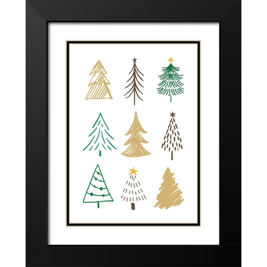 Christmas Trees 1 Black Modern Wood Framed Art Print with Double Matting by N., Kristina