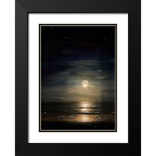 Full Moon Over Ocean Black Modern Wood Framed Art Print with Double Matting by Day, Ruth