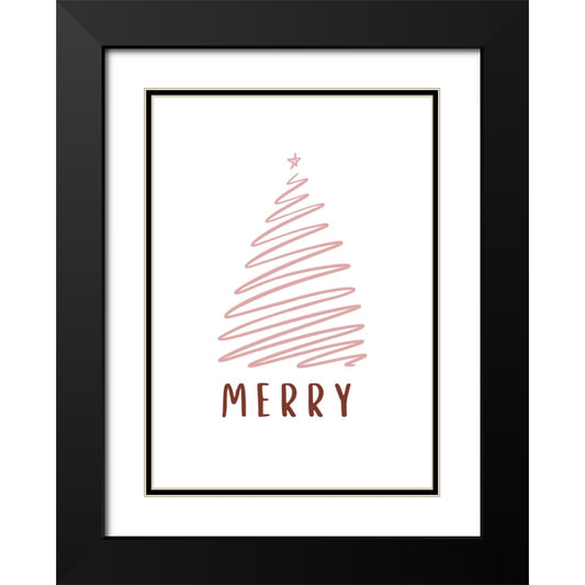 Christmas Tree Merry Black Modern Wood Framed Art Print with Double Matting by N., Kristina