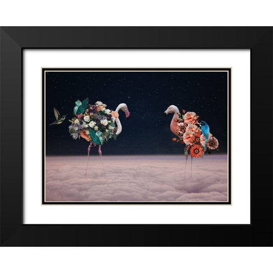 Flamingos Black Modern Wood Framed Art Print with Double Matting by Zhividze, Salome