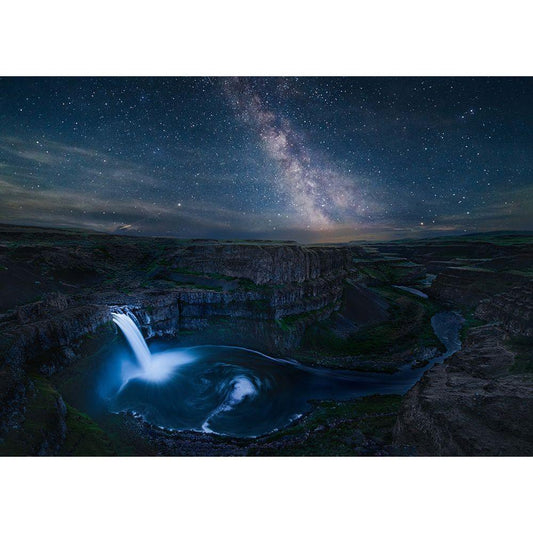 Falls In Night Black Modern Wood Framed Art Print with Double Matting by Xu, Leah
