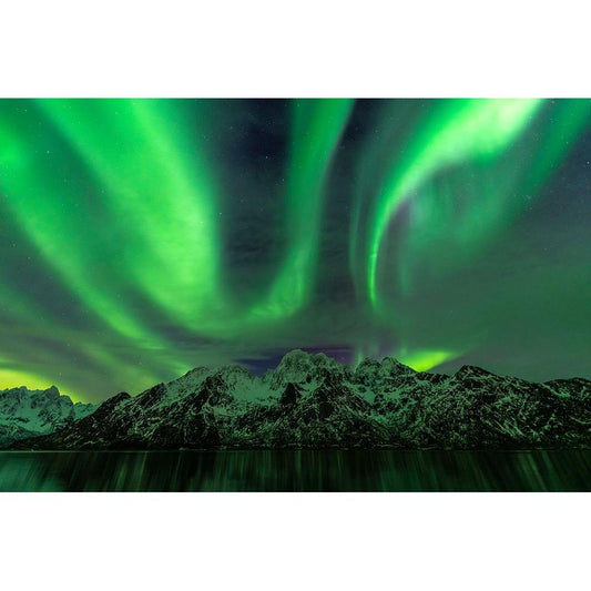 Lofoten Aurora Mountains Black Modern Wood Framed Art Print with Double Matting by Alicke, Bjoern