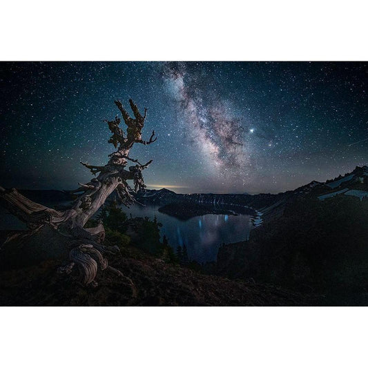 Milky Way Over Crater Lake Black Modern Wood Framed Art Print with Double Matting by Jacobs, Lydia