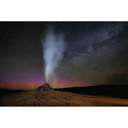 Wyoming-Yellowstone National Park Aurora and Milky Way above erupting White Dome Geyser Black Modern Wood Framed Art Print with Double Matting by Jaynes Gallery