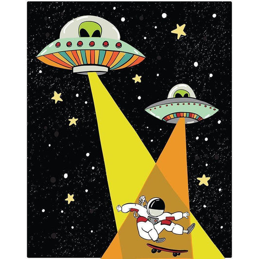 Skating Alien Black Modern Wood Framed Art Print with Double Matting by Rupp, Mariah