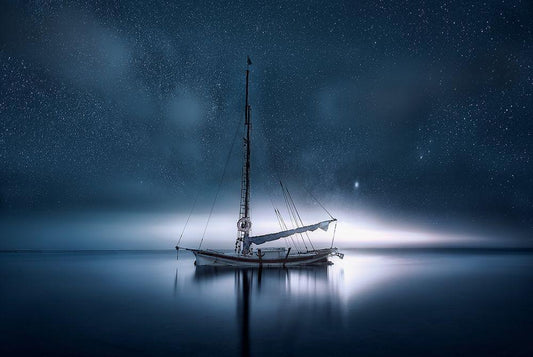 Drifting Night White Modern Wood Framed Art Print with Double Matting by Antonio Trivino, Jose