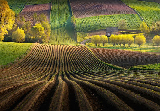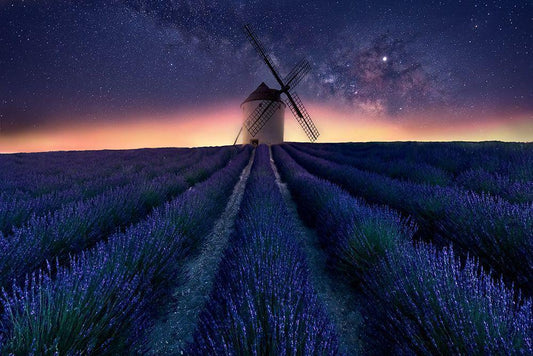 Lavender Fields White Modern Wood Framed Art Print with Double Matting by Ruiz Dueso, Jorge