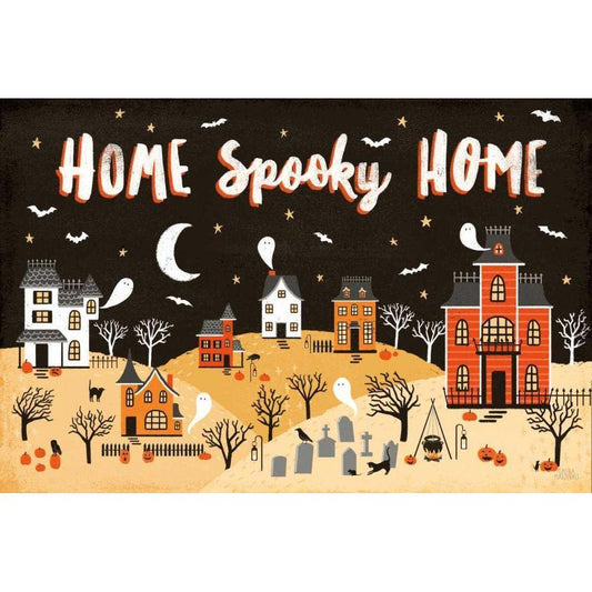Spooky Village IV Happy Halloween Black Modern Wood Framed Art Print with Double Matting by Marshall, Laura