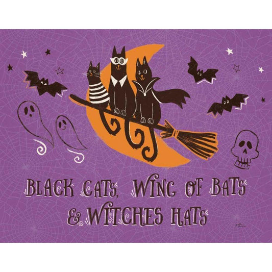 Spooktacular I Black Cats Purple Black Modern Wood Framed Art Print with Double Matting by Penner, Janelle