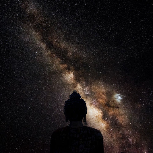 The God And Universe White Modern Wood Framed Art Print with Double Matting by Swapnil