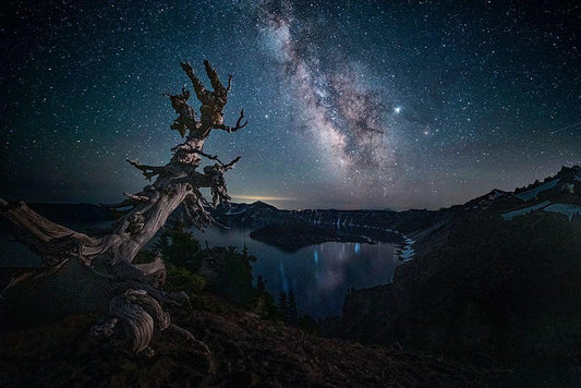 Milky Way Over Crater Lake White Modern Wood Framed Art Print with Double Matting by Jacobs, Lydia