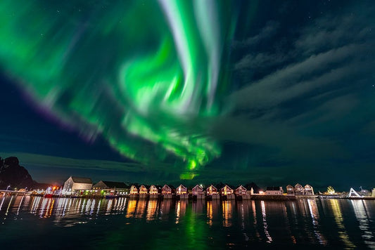 Svolvaer Polar Light 1 White Modern Wood Framed Art Print with Double Matting by Alicke, Bjoern