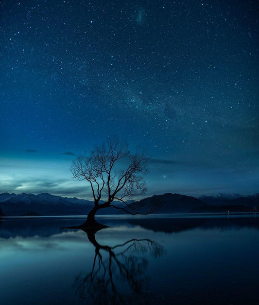 Wanaka Tree White Modern Wood Framed Art Print with Double Matting by Cheng, Yu