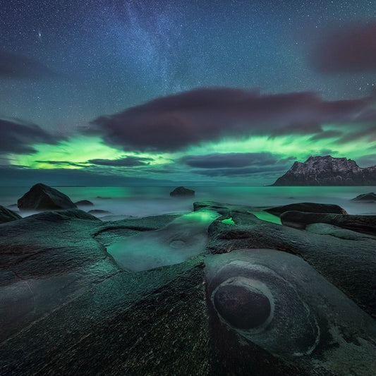 Haukland Beach White Modern Wood Framed Art Print with Double Matting by Fleckenstein, Martin