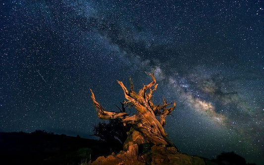 The Galaxy And Ancient Bristlecone Pine White Modern Wood Framed Art Print with Double Matting by Hua